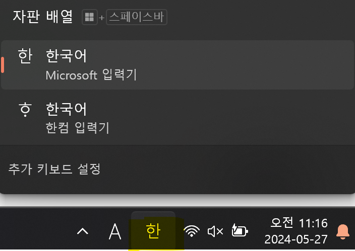 이제 microsoft 입력키 하나만 있어서 한컴 입력키로 바뀔 걱정은 하지 않아도 된다.