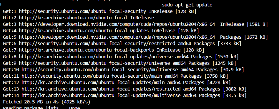 sudo apt-get update 한 결과