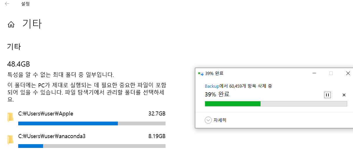 에 이렇게나 큰 크기의 폴더가 있었는데